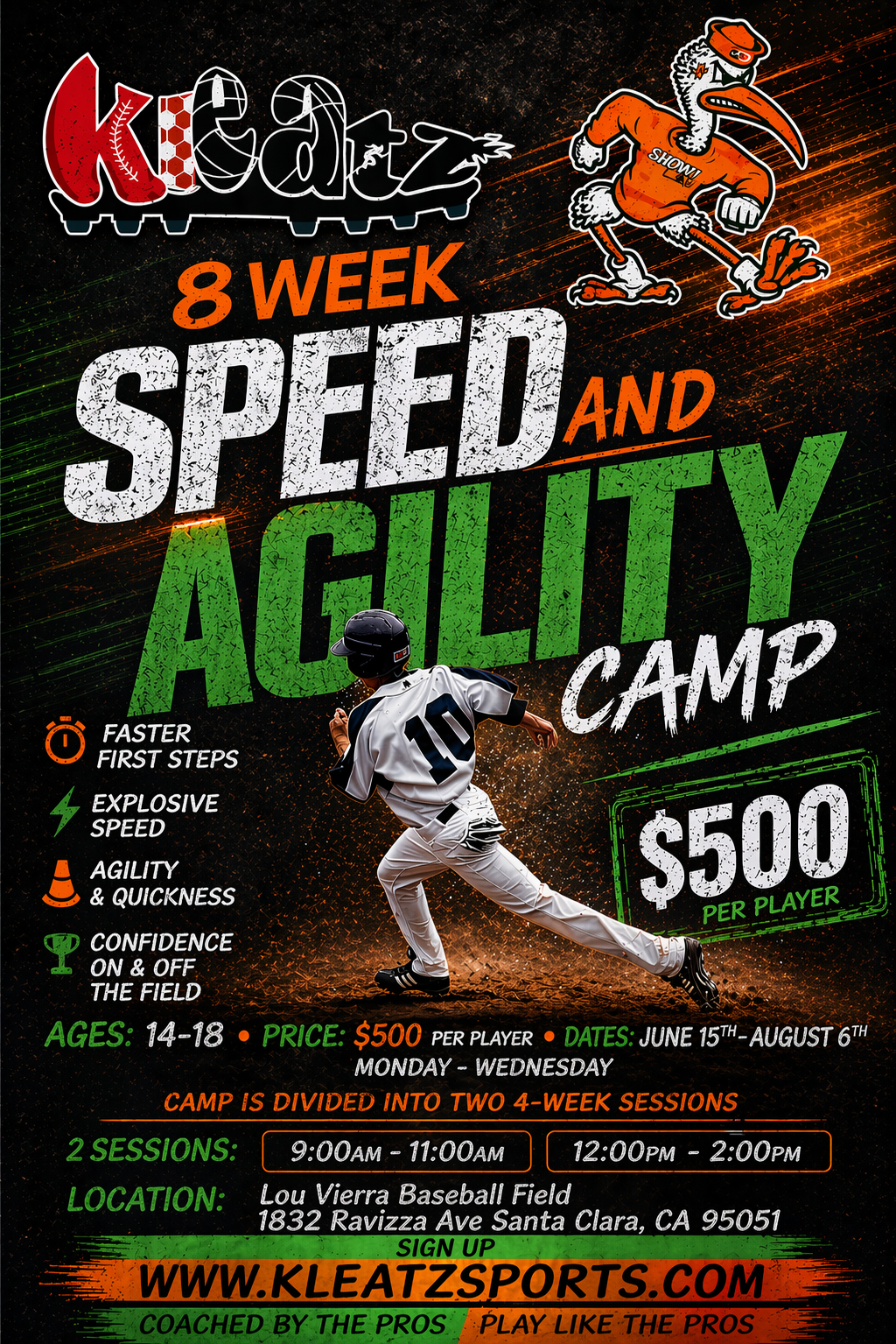 The Kleatz Sports and Show Cali offers the opportunity for athletes to receive valuable instructions from professional baseball players on the fundamentals of speed and agility. Athletes will be made aware of the characteristics that define being athletic.